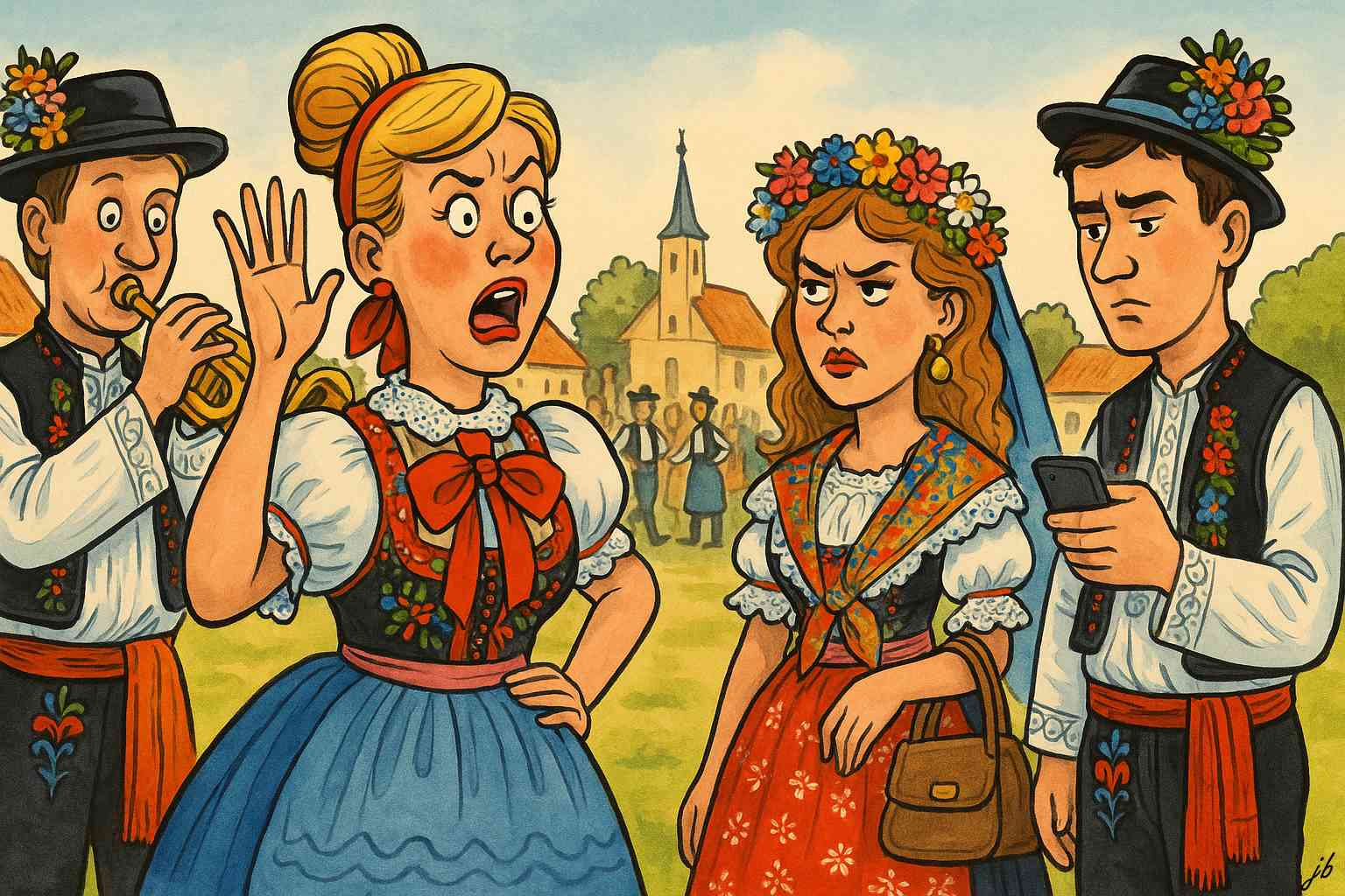 Kdysi stačilo vzít si kroj, přinést si dobrou náladu a vědět, komu se při tanci dívat do očí, aby z toho byl příběh na celý život. Dnes? Dnes musí každý správný účastník hodů nejdřív otevřít šatník, konzultovat Instagram a zavolat kamarádce, jestli je flitrová sukně „ještě v pohodě“, nebo už „totální trapas“. Vesnice, kde dřív šlo o to, jestli chlapec dovede děvče domů, dnes řeší, jestli ta zelená halenka ladí s kabelkou z loňské kolekce a zda je vůbec vhodné pít burčák v bílých šatech, když každý ví, že hody končí minimálně jedním politým ubrusem a jednou rozbitou sklenicí.