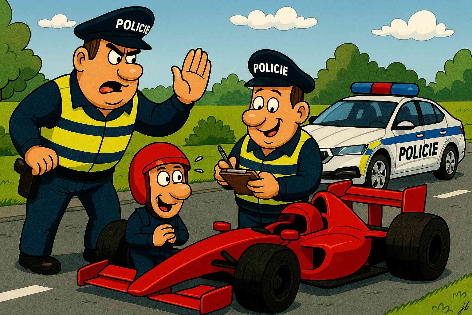 Jenže místo špičkového monopostu z dílny Ferrari se před hlídkou skvěl upravený osobní vůz s nárazníkem z e-shopu a křídlem, co by se hodilo spíš na sušák prádla. Majitel auta, nadšený tuner, s úsměvem přiznal: „Chtěl jsem, aby to vypadalo jako z plakátu. Netušil jsem, že mě kvůli designu zastaví policie, a ne fanoušci pro autogram.“ Místo závodu tak proběhla technická porada na krajnici. Policisté obdivovali „aerodynamické“ křivky vozu, který by na dálnici možná dosáhl rychlosti cyklisty z Tour de France, kdyby mu vítr foukal do zad.