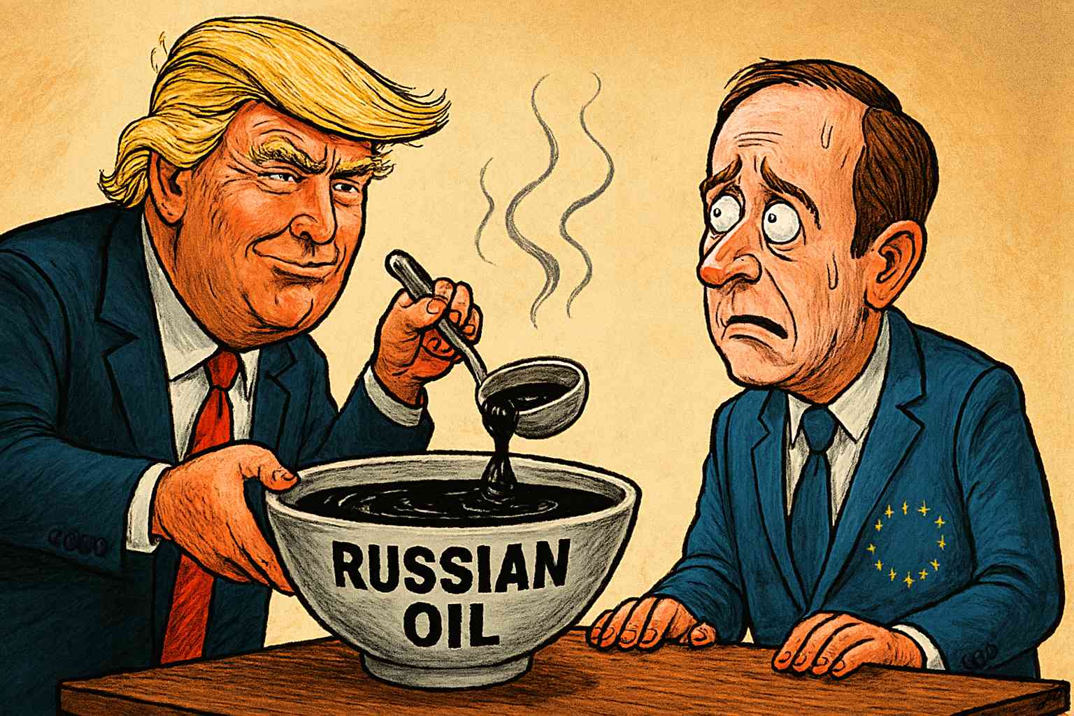 A tak zatímco Evropa přemýšlí, jestli si dát ropný půst, Trump už má jasno: ruská ropa je jako energetický nápoj pro diktátory. A detox začíná právě teď.